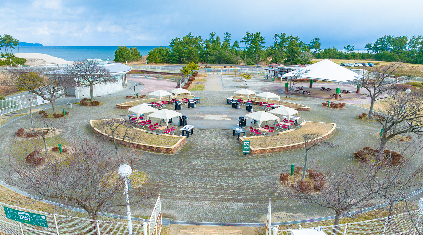 2022年春、鳥取県米子市弓ヶ浜公園内の旧わくわく広場がリニューアルして、本場アメリカ流のバーベキューを体験できるBBQPARKがオープン! 大きなタープテントの下に家族や仲間が集まって、お好みの食材を持ち込んでグリルで焼けば、みんなの笑顔があふれる楽しい時間になるはずです。